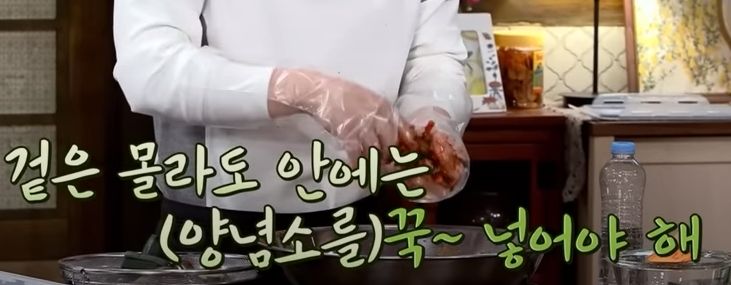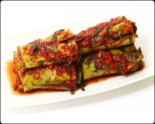 다진 마늘 3~5큰술, 생강 1큰술, 설탕 1~3큰술, 고춧가루 7~8큰술, 까나리 액젓 7~8큰술, 찹쌀풀(찹쌀 1/2큰술, 물 100ml)