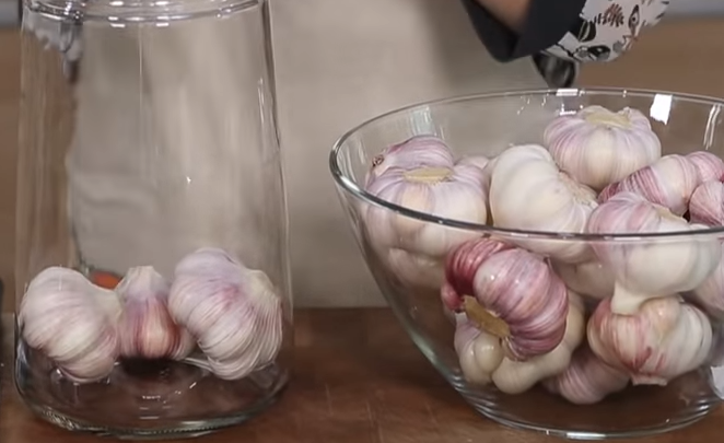 1. 통마늘은 마늘대를 잘라낸 후 겉 껍데기을 제거하기가 편하기 위하여 물에 두어 시간 담가 둡니다.