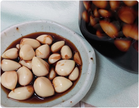 다된 마늘장아찌는 냉장보관을 시작한 후 1달이 지나면 먹을 수 있다고 합니다. 그리고 1년이상 보관하는게 가능해요. 특히 초절임과정으로 담았기 때문에 1달 후 아린맛이 제거된 마늘장아찌를 먹을 수 있다고 합니다. 만에 하나라도 초절임과정을 생략했다면 2~3달 후에 아린맛이 제거된 마늘장아찌를 먹을 수 있어요. 아린맛은 시간이 지날수록 점점 사라지게 되어요. 이로 인해서 마늘장아찌는 기간을 두고 숙성시킨 후 섭취하면 더 좋아요.