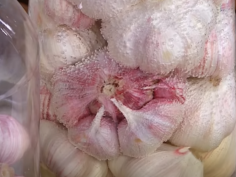 4. 일주일 후 초절임물에서 마늘을 건져 체에 받쳐서 물기를 제거해요. 물기를 완전히 제거해 주는 것이 중요해요. 그렇지 않으면 마늘장아찌가 물러질 수 있어요.