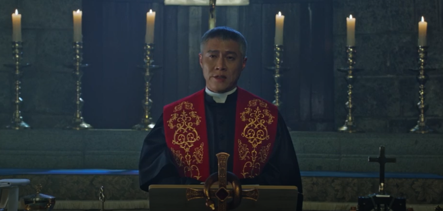 이 상황에 누군가는 책임을 져야 합니다. 교구장은 온실장을 벌하려고 합니다. 당연히 김도기를 이길 수 있을 거라는 온실장의 오만함이 이번 일을 그르쳤다고 말합니다. 온실장은 다시 기회를 달라고 합니다. 신부 복장을 한 교구장은 도대체 어떤 인물일까요?