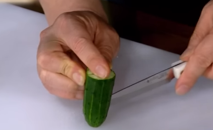 1. 오이가 시간이 지나도 무르지 않고 아삭아삭한 식감을 유지하도록 하는 과정이 필요합니다. 가장 먼저 깨끗하게 씻은 오이의 양끝을 잘라내 줍니다. 너무 끝까지 사용하게 되면 쓴맛이 날 수 있기 때문에 쓴맛이 나는 끝 부분을 잘라 주는 게 좋습니다. 그리고 대략 길이를 맞춰서 3~4등분 정도 크기로 자릅니다.