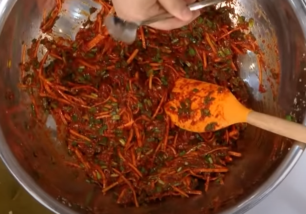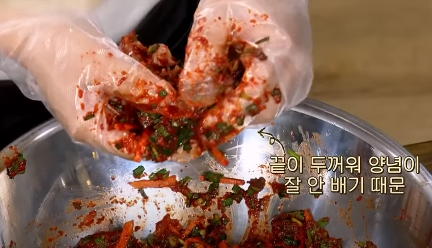 다진 마늘 3~5큰술, 생강 1큰술, 설탕 1~3큰술, 고춧가루 7~8큰술, 까나리 액젓 7~8큰술, 찹쌀풀(찹쌀 1/2큰술, 물 100ml)