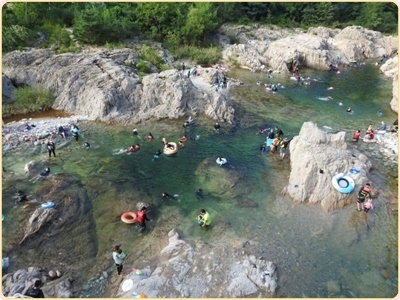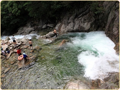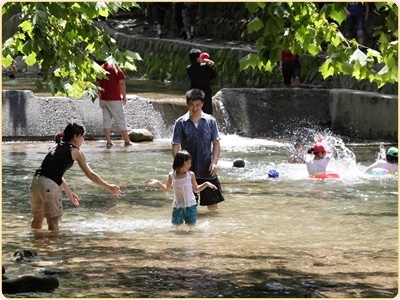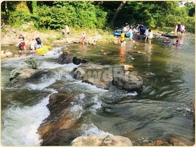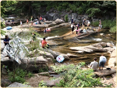 실제로 장마때 물이 불면 물고기들이 계곡을 거슬어 높게되는 모습을 볼 수 있습니다. 시원하게 쏟아져 내리는 물소리와 짙은 나무그늘, 발이 시리도록 차가운 물 등이 더위를 간정히 닦아줍니다 어린이들과 물놀이를 하기 때문에 는 물살이 빠르지도 차지도 않은 마을 아래쪽이 좋다고해요.